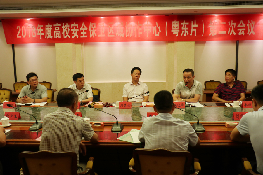 周镇松副书记就做好高校国家安全工作和协作中心建设提出三点建议:一是高校国家安全工作在总体国家安全工作中有着重要地位;二是维护高校国家安全需要有新知识和新思想;三是区域协作中心建设需要加强联系和交流,实现共享。周镇松希望粤东各高校能以党的十九大精神和习近平总书记关于安全发展理念重要指示为指导,以饱满的激情、扎实的作风,勤政务实、奋发进取,通过努力,把粤东片区高校安全保卫区域协作中心建设成交流合作的平台、增进友谊的平台、共同进步的平台。